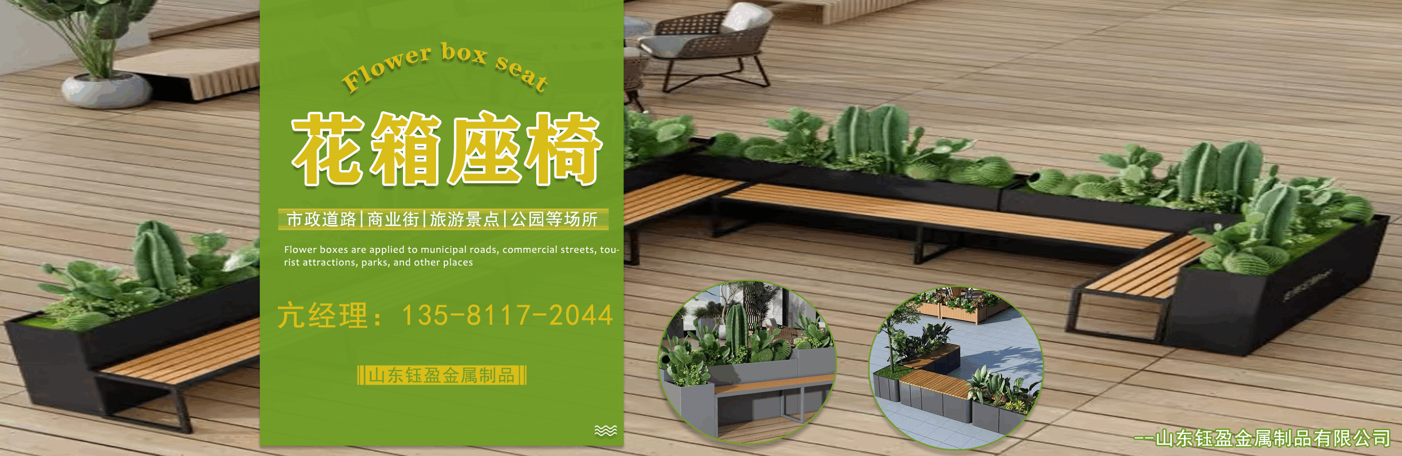 山東鈺盈金屬制品有限公司主營鍍鋅板花箱,道路隔斷花箱,定制花箱,戶外道路花箱,花箱座椅等產品,產品結構合理、性能優良,具有強度高、耐腐蝕、抗老化、隔熱隔音、節約能源、外形美觀、使用壽命長等優點,深受國內外客戶認可?! ∥覀兏鶕蛻羲诔鞘械奈幕卣鳎圃斐龇袭數爻鞘形幕瘹庀⒌淖匀涣Ⅲw、觀賞性強的花箱產品成為城市里一道靚麗的風景線?! 」緦嵭姓\實、公正、守信、價格合理、平等互利?! 」緫{借雄厚經驗實力,恪守誠信為本的原則,得到了眾多客戶的信賴,并在業界獲得良好的口碑。建立了穩固的合作關系,隨著業務的不斷發展和壯大,合作伙伴的范圍也在不斷擴大。我們熱情盼望與您的合作,為社會的可持續發展獻上一份努力。...